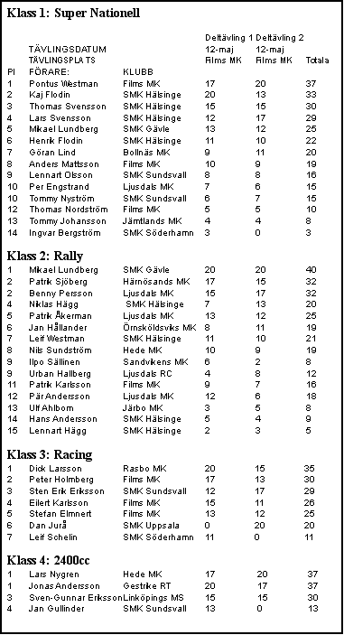Resultat från TOYO Cup Deltävling 1 Films MK 12 maj 2002